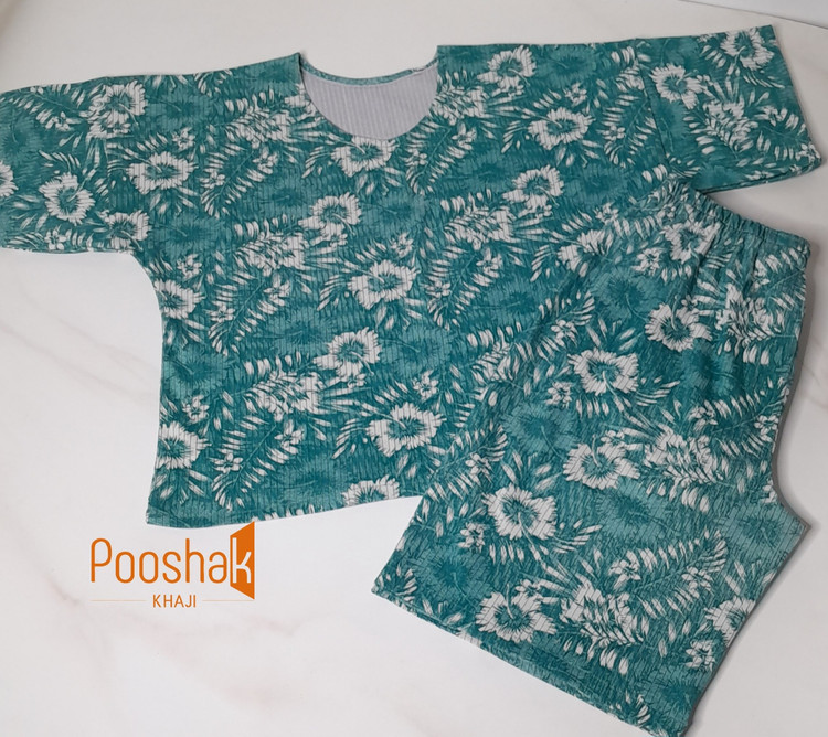 ست تی شرت و شلوارک زنانه طرح هاوایی محصولی است از تولیدی پوشاک خاجی. این ست با طراحی ساده و شیک و استفاده از پارچه ملانژ لاکرا، مناسب فصل تابستان و استفاده روزمره در منزل میباشد.